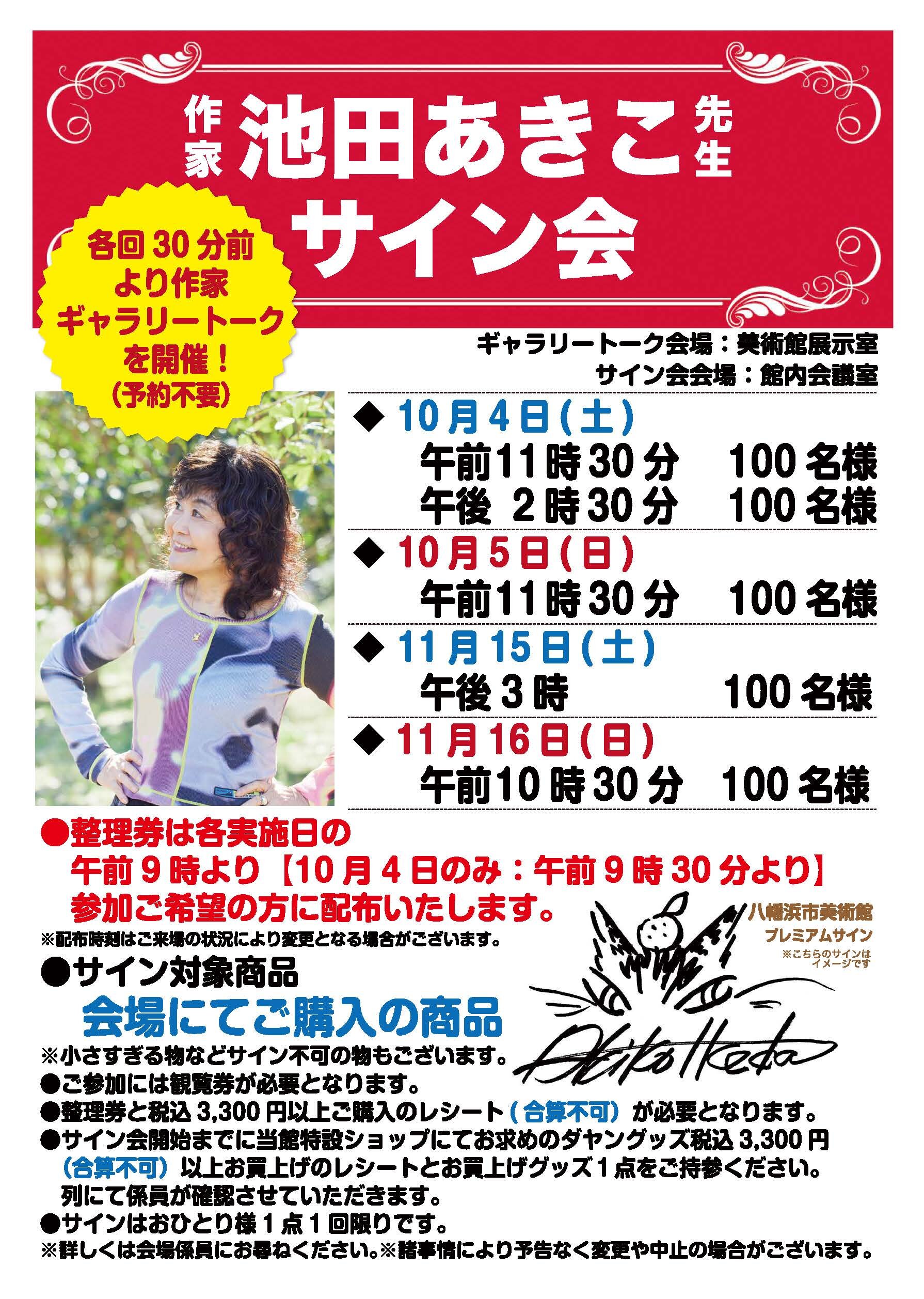 ※実施日サイン会整理券は当日9時より配布いたします。(10月4日(土)のみ9時30分から配布)