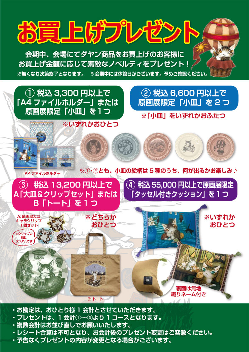 会期中イベント会場にて「猫のダヤン」商品を税込10,000円以上お買い上げのお客様に、アートカードをプレゼントいたします。