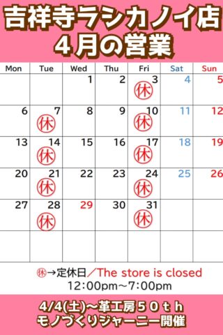 定休日のお知らせ なんばウォーク店