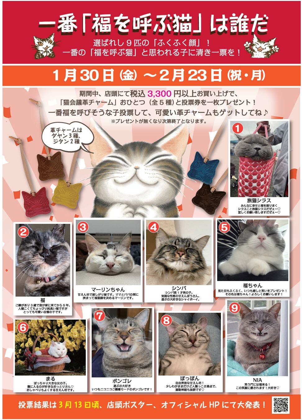 一番福をよびそうな子に投票して可愛い革チャームもゲットしてね♪