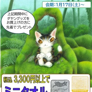 三省堂書店 海老名店(神奈川県)/「猫のダヤンフェア」開催のお知らせ 期間:2026年1月17日(土)~2026年2月中旬頃まで 場所:三省堂書店 海老名店 神奈川県海老名市中央1-1-1 ViNAWALK1番館 4F 期間中、わちふぃーるどグッズを税込3,300円以上お買上げのお客様に先着にて ダヤンの"ミニタオル"を1つさしあげます。 皆様のご来店を心からお待ちいたしております。 ※商品およびプレゼント品等は数に限りがございます。予めご了承ください。 前の記事 次の記事