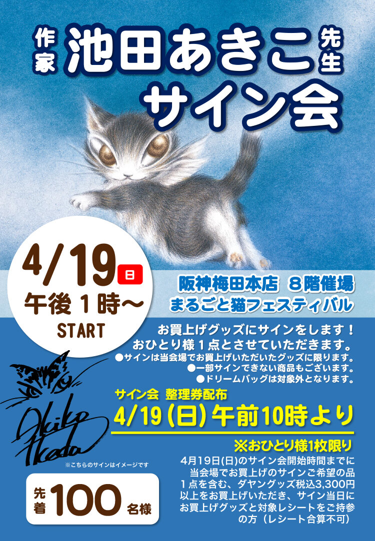 4月19日(日)午前10時より、会場にてサイン会整理券を先着100名様に配布いたします。